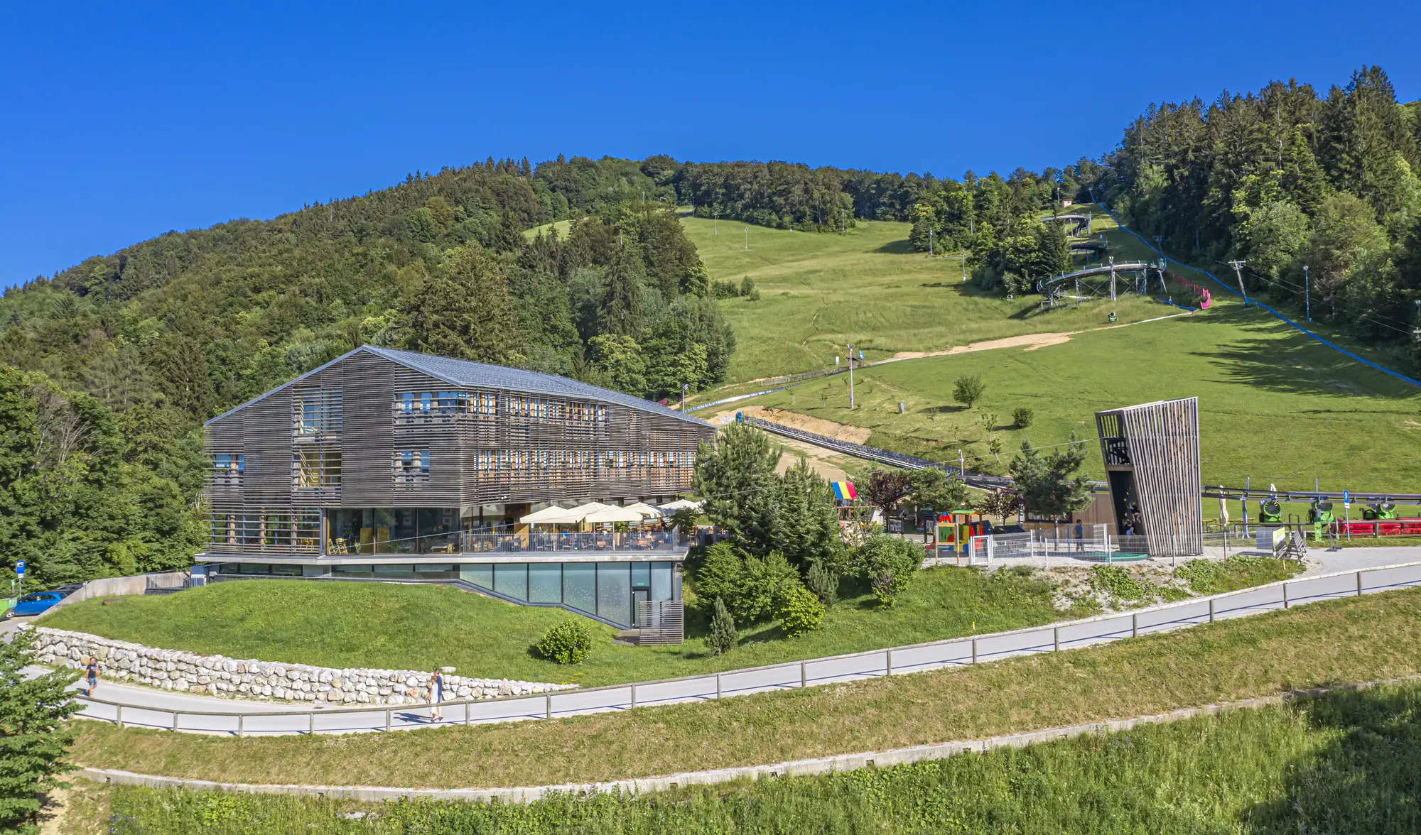 Pot med Celjem in Laškim je Alma Karlin pogosto prehodila kar peš. Gostom, ki jih je vodila s seboj ali pa jih je povabila na vlak od Celja do Laškega, je lahko pokazala, kje leži manjši vinograd v njeni lasti. Po 2. svetovni vojni je živela v hišici na stičišču Celja in Laškega.