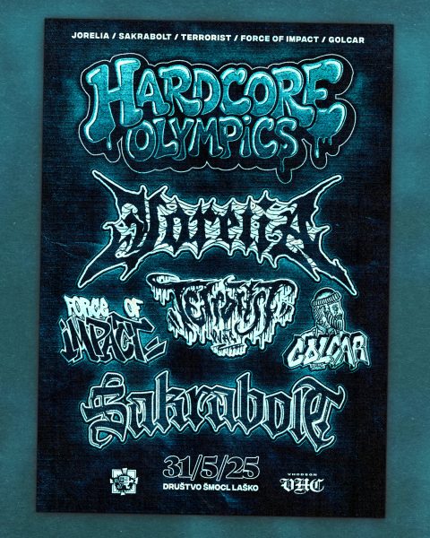 Po predolgem premoru se v Društvo ŠMOCL vrača pravi hardcore udarec, vabljeni na HARDCORE OLYMPICS! Tokrat na oder prihaja italijanska beatdown sila Jorelia in Terrorist iz Pavie, kranjska heavy hardcore bomba Sakrabolt, domača hardcore metal mašina Force of Impact ter mladi hardcore upi Golcar, prav tako iz Kranja!