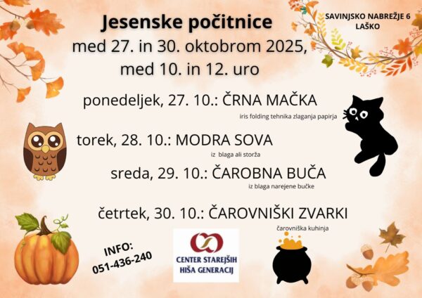 Jesenske počitniške delavnice v Hiši generacij Laško