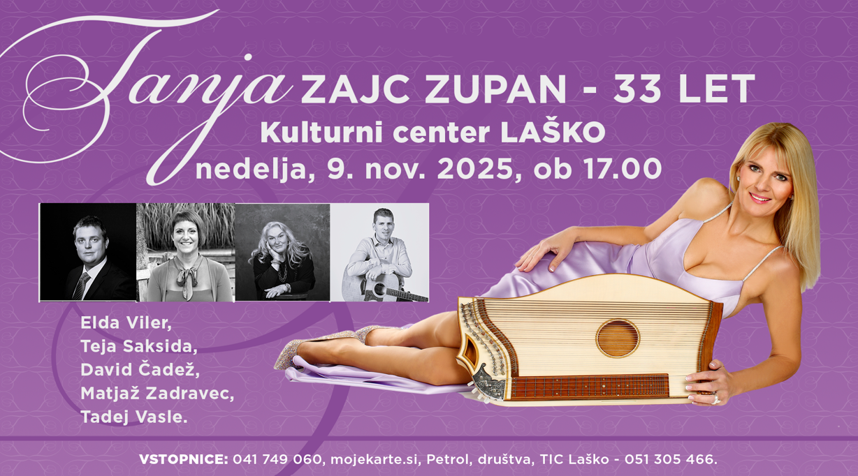 Citrarka Tanja Zajc Zupan praznuje 33 let glasbene kariere s koncerti po Sloveniji. Ob ganljivih zvokih citer bodo nastopili Elda Viler, Teja Saksida, David Čadež, Matjaž Zadravec in klaviaturist Tadej Vasle.