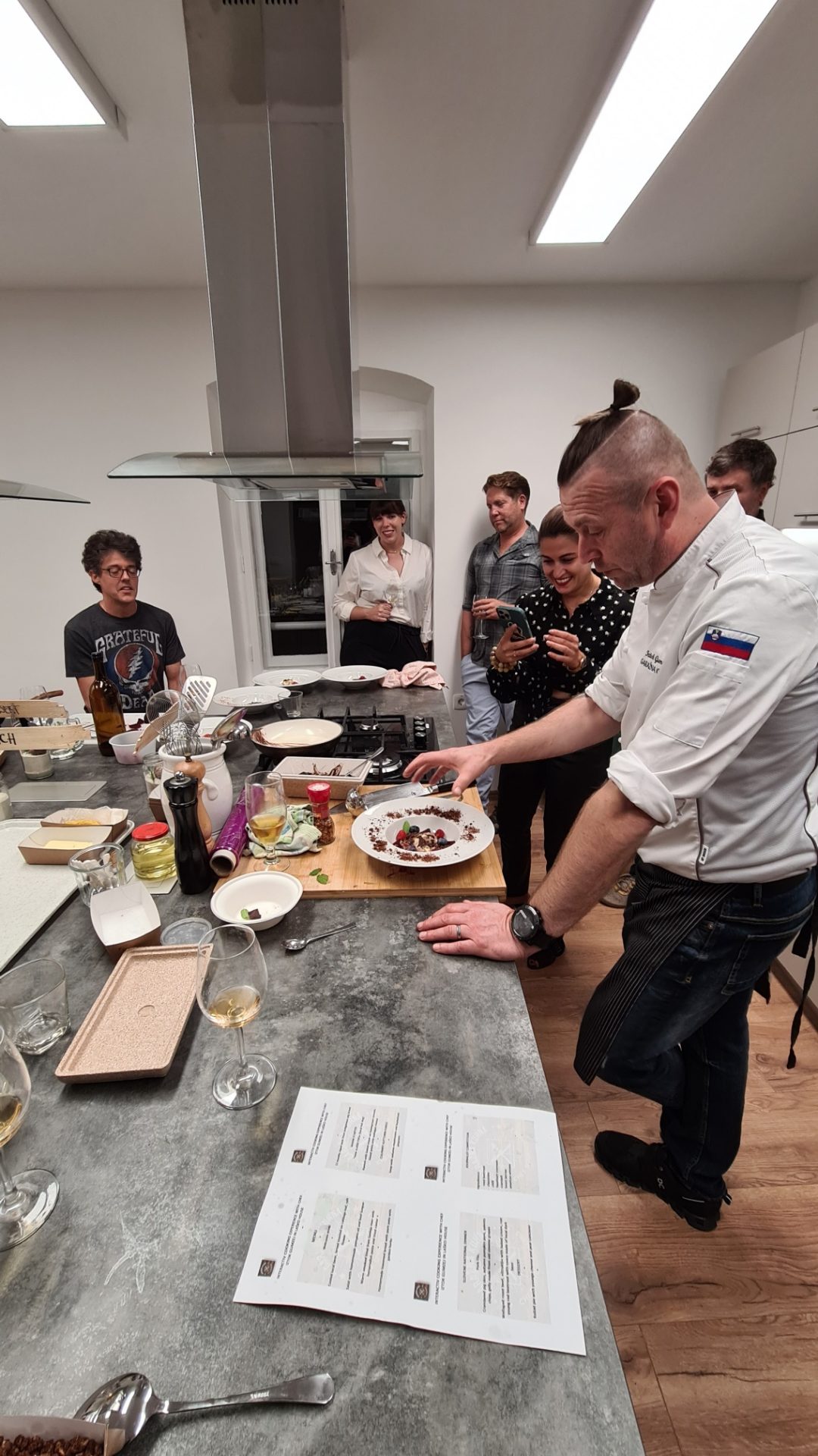 Hladni zimski večeri, ko se svetloba dneva poslovi že zelo zgodaj, ko se družimo s prijatelji in z njimi kaj dobrega skuhamo in pojemo, so tukaj. Družabna večerja, kjer se boste družili s slovenskim chefom. Lahko se boste preizkusili v vlogi sous chefa, pomočnika ali pa le gledalca. Izbira je čisto vaša.