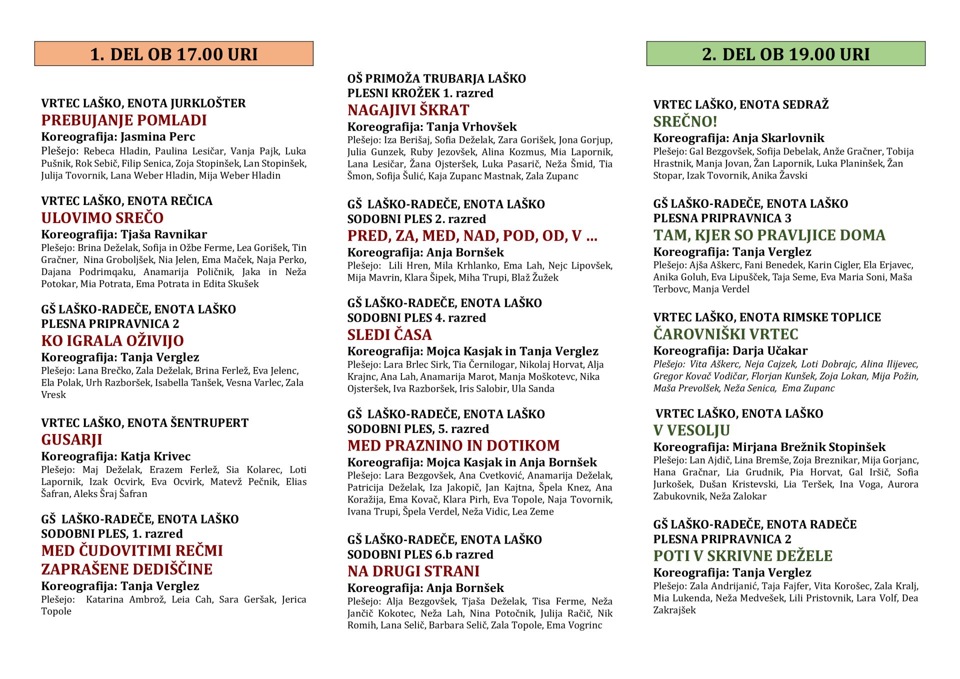 Revija bo potekala v dveh delih. Program posameznih nastopajočih je dostopen TUKAJ, celoten programski list pa si lahko ogledate TUKAJ.