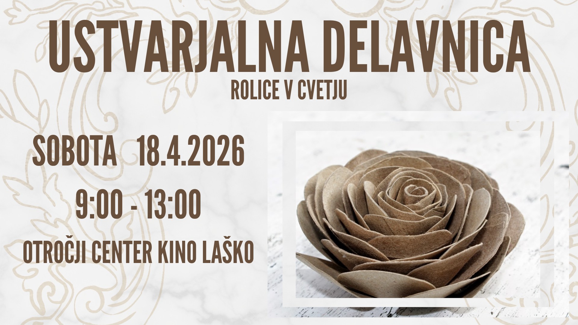 V Otročjem centru Kino Laško bo v sklopu Otroške sobote potekala ustvarjalna eko-delavnica, kjer bodo otroci iz odpadnih kartonastih rolic ustvarjali pisane spomladanske cvetove.