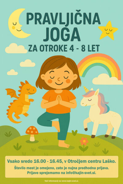 Joga bo potekala v Otročjem centru Kino, vsako sredo od 16. do 16.45 ure!