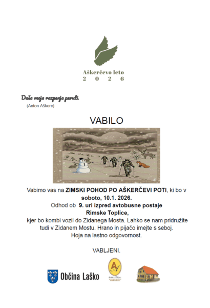 Vabljeni na Zimski pohod po Aškerčevi poti.