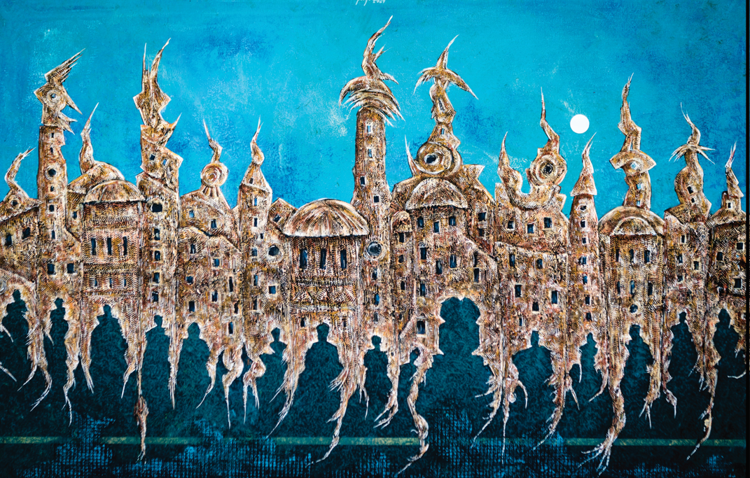 Duhova dela so polna simbolike: od portalov kot prispodob za prehode med zemeljskim in vesoljskim, do elementov memento mori, ki nas spominjajo na krhkost življenja. Hkrati pa v slikah najdemo tudi žarke optimizma – sonce, mesec, svetlobo in prostrana neba, ki odpirajo prostor za upanje in novo razumevanje sveta.