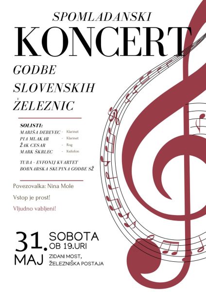 Vljudno vabljeni na spomladanski koncert Godbe Slovenskih železnic Zidani Most.