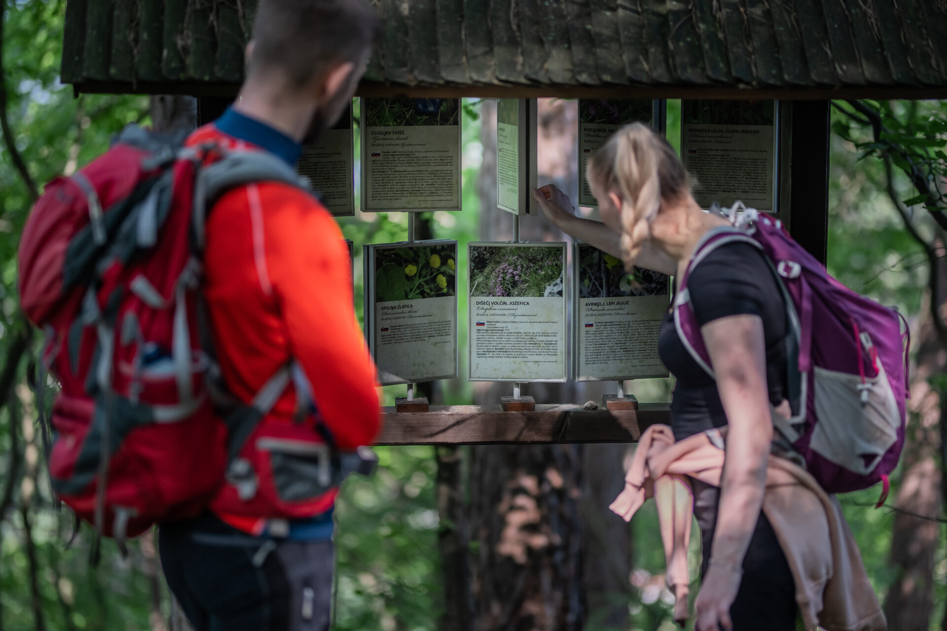 grad Tabor, razgledišče Blaževa skala, razgledišče Divji farovž, rastlinstvo Huma, razgledišče Prižnica, evharistični križ pod vrhom Huma