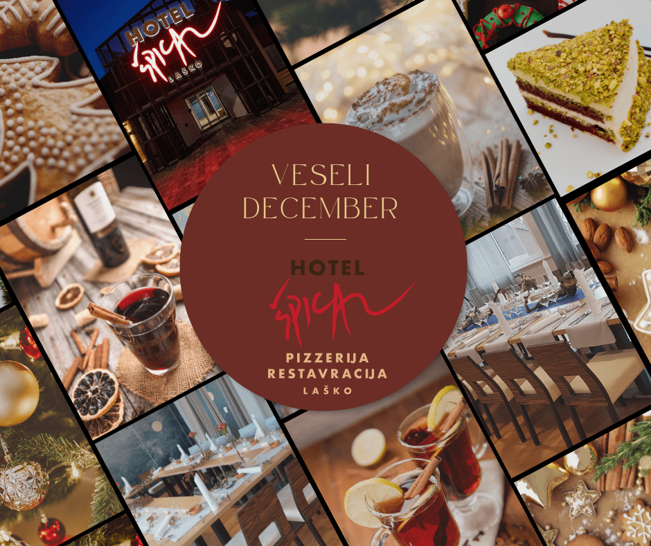 Bliža se konec leta in s tem tudi veseli december, ko si vzamemo čas za druženje z našimi najbližjimi, prijatelji, sodelavci in poslovnimi partnerji. V veselem decembru dobrodošli na kulinarične decembrske zaključke, nepogrešljivo kuhano vino, omamne vroče čokolade z okusi, ter odlične praznične sladice.