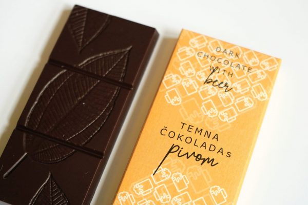 Cocoa parts: minimum 60%. Ingridients: cocoa mass, sugar, cocoa butter, cocoa powder, beer (1%), hops, emulsifier: soy lecithin, vanilla. Can contain traces of nuts.