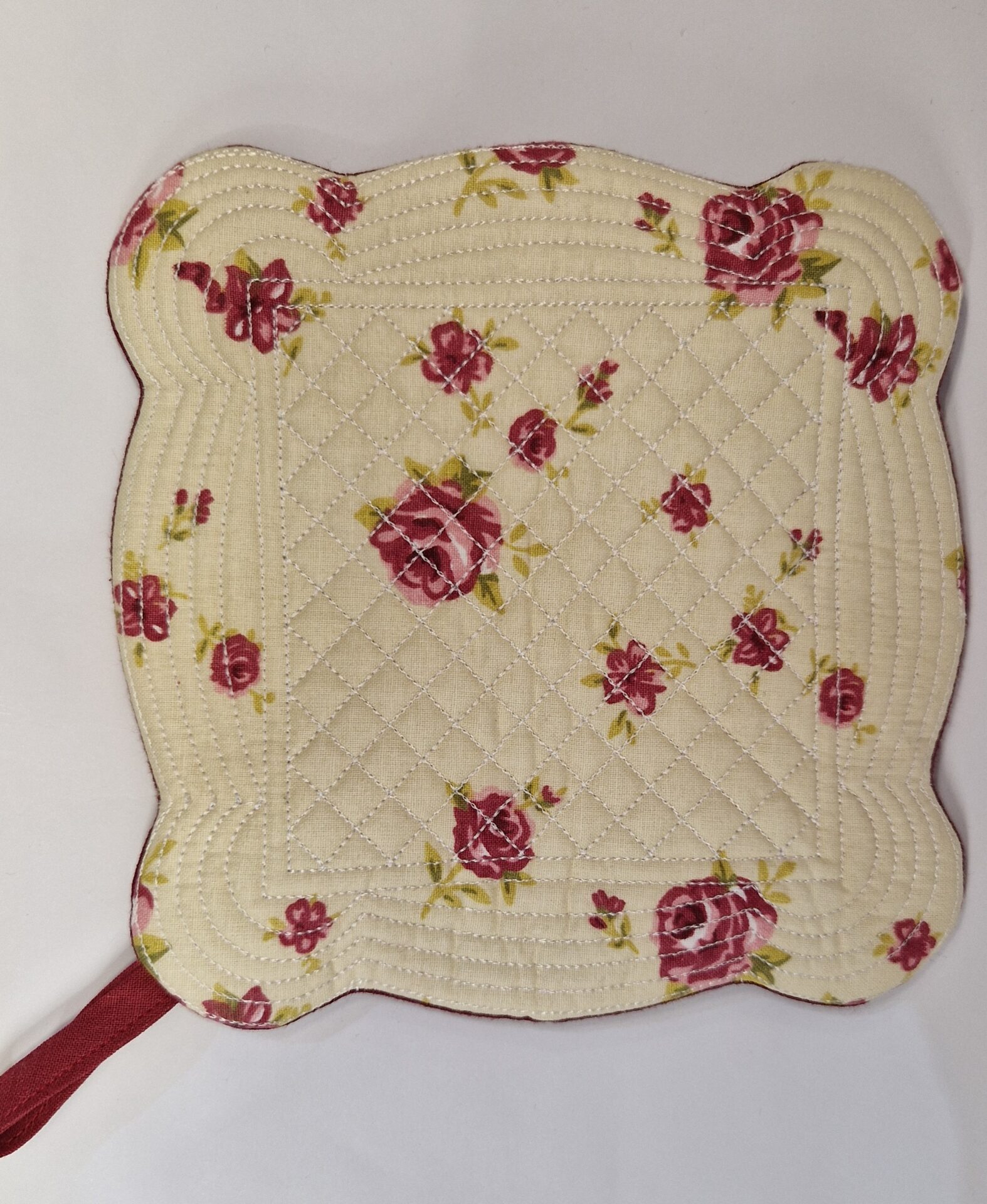 A unique kitchen handle, handmade and decorated with a floral pattern.