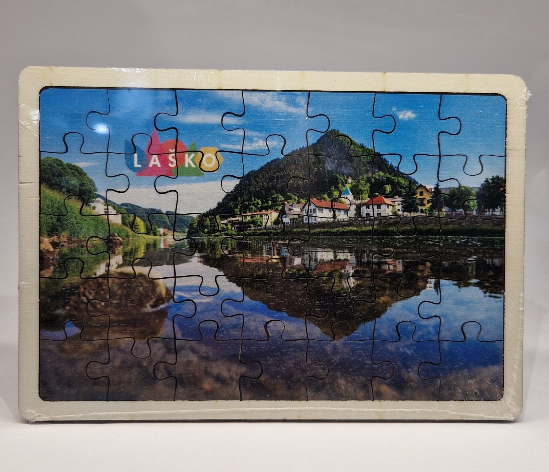 A puzzle with a Laško motif, showing the center of the city of Laško and the Hum hill in the background. Suitable for all ages and contains 35 pieces.