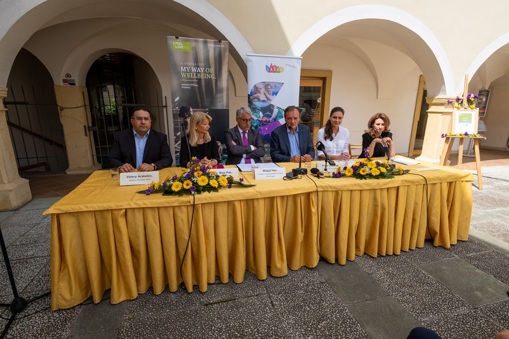 Sredina (22. 6. 2022) novinarska konferenca, katere gosti so bili poleg župana Franca Zdolška, direktorica STIK-a Tina Belej, predsednica uprave Thermana Laško Mojca Leskovar, direktor Rimskih term Valery Arakelov, minister za gospodarski razvoj in tehnologijo Matjaž Han ter direktorica STO mag. Maja Pak, je bila namenjena nedavno prejetemu priznanju destinaciji Laško na področju trajnostnega turizma, znak Slovenia Green Platinum.