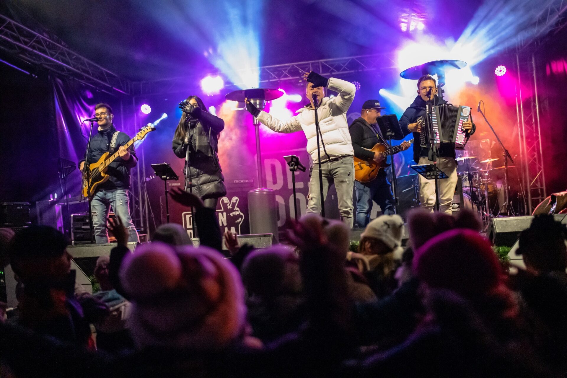 Cortile del Municipio di Laško - Saluto al vecchio anno con i gruppi Vampir e Firbci – Concerto musicale