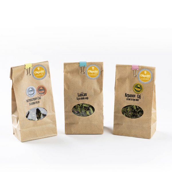 Sestavine: kopriva, melisa, navadni jagodnjak, navadna robida, poprova meta, rman, posušeni jabolčni olupki.