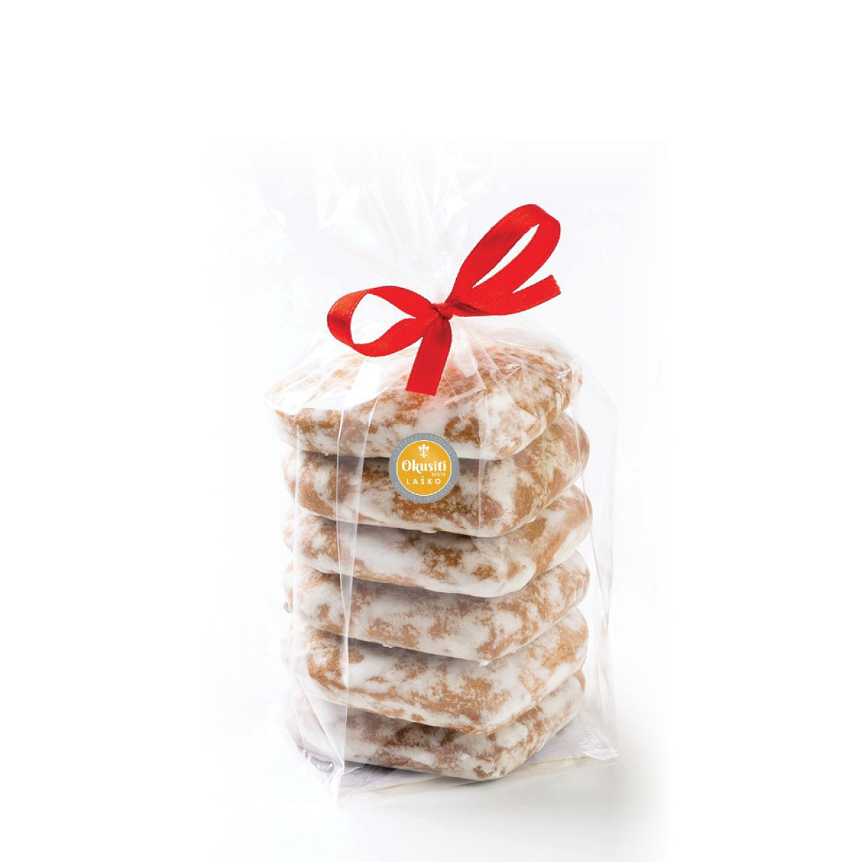 Sestavine: pšenična in ržena moka, med, sladkor, glukozni sirup, voda, amonijev karbonat (E503), pepelika (E501), soda bikarbona (E500). Začimbe: cimet, klinčki in muškatni orešček.